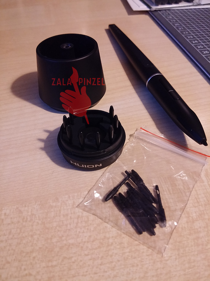 He tardado tanto en hacer review por poder experimentar el momento culmen en el que el lápiz se quedaba sin batería. Por que sí, lectores míos, cada stylus dispone de una pila de litio y dura aproximadamente un mes de uso más o menos continuado (yo le aproximo 40 horas ). Por suerte, nuestros amigos de Huion debían tener ya pensado esto, por lo que incluyeron el segundo stylus. ¿Qué pasa? Que servidora no lo puso a cargar, así que esto sigue siendo un medio punto en contra, por dejarme colgá.